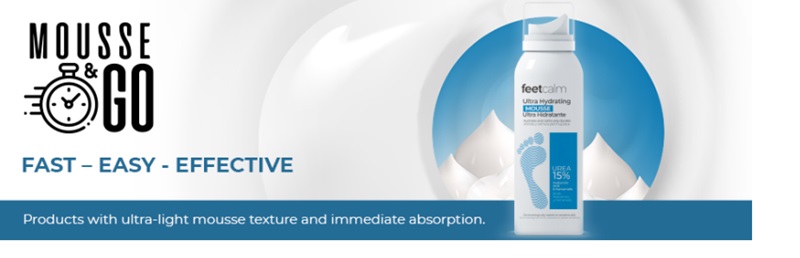 - Lehké pěny s vysokou koncentrací aktivních látek, které se rychle vstřebávají a poskytují intenzivní hydrataci suché a popraskané pokožce nohou.