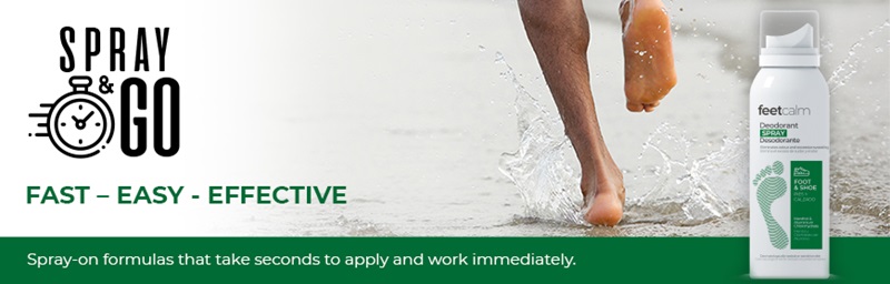 Produktová řada DEODORANTŮ A ANTIPERSPIRANTŮ Feetcalm je navržena tak, aby regulovala nadměrné pocení a okamžitě eliminovala nepříjemný zápach, takže nohy a boty zůstávají svěží po celý den.
